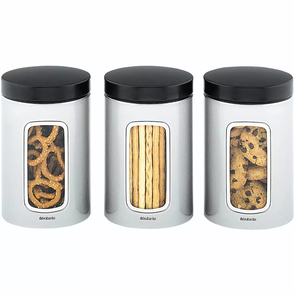 Keep the kitchen organised with the Brabantia Window Canister 1.4L 3 Piece Set Steel.