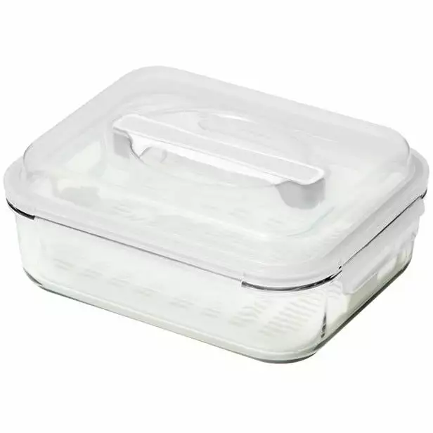 Store your food so it remains fresher for longer with the Glasslock Handy Food Container + Insert. Made out of high-quality and extremely durable tempered glass, this storage container is airtight, leak-proof and BPA free. With a construction that’s microwave, fridge and freezer safe, this container is perfect for marinating meat or for meal prepping and features an easy open and close snap-lock system.