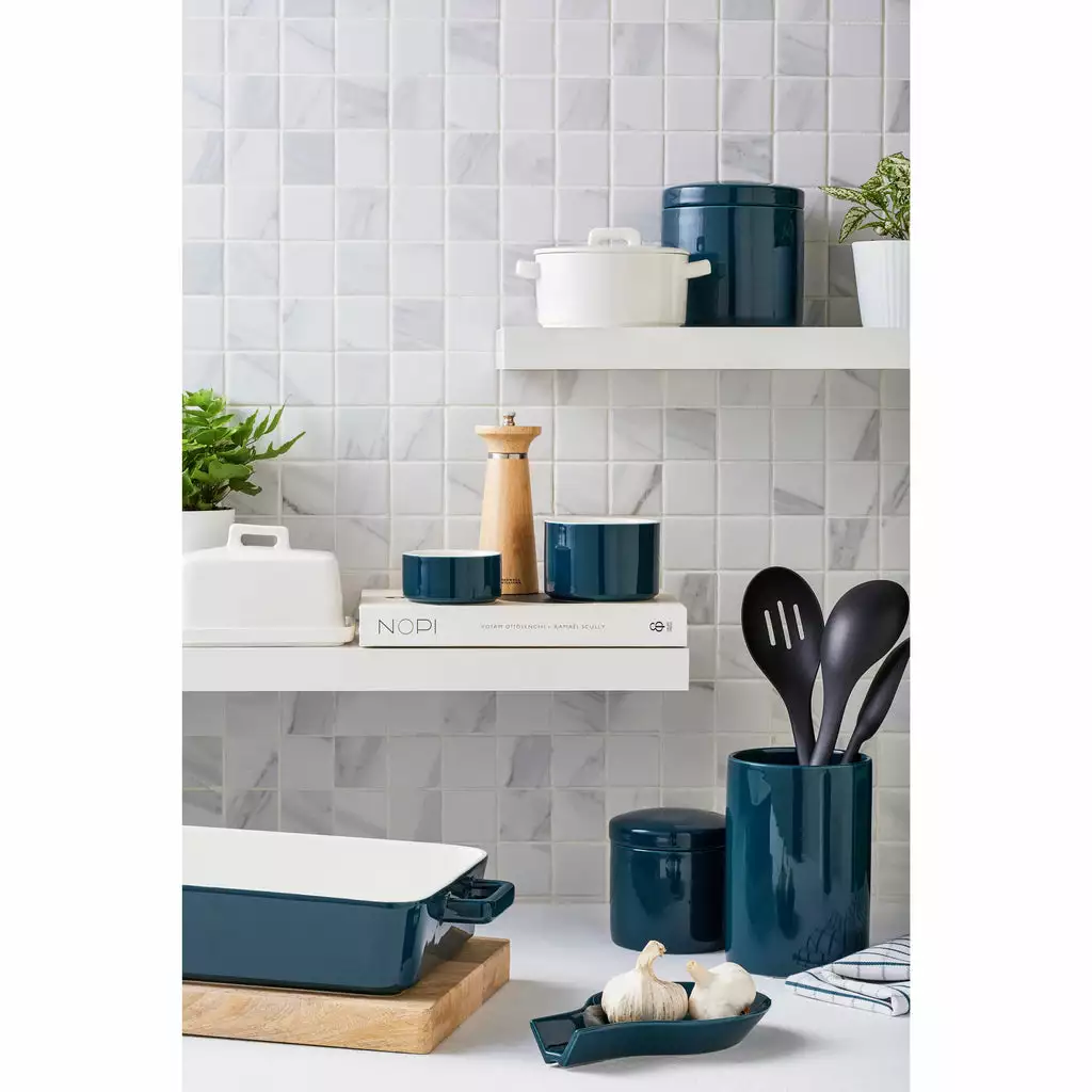 Have the perfect combination of style and sophistication on display in your kitchen with the Maxwell & Williams Epicurious Canister 1L Teal Gift Boxed. Carefully crafted from high-quality porcelain for ultimate visual appeal and durability, this canister is guaranteed to add a modern vibe to your kitchen’s decor. Featuring a beautiful, shiny teal finish, this canister is perfect for storing your favourite cookies in or your other essentials such as sugar or coffee.