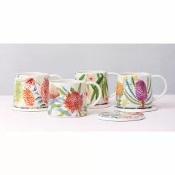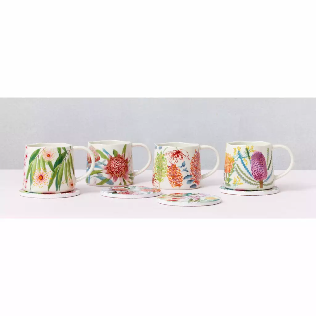 In this newest collection designed in collaboration with Royal Botanic Gardens Victoria, you can enjoy beautiful patterns inspired by Australia’s native flowers on your favourite dinnerware, tableware and more. Offering a beautiful way to capture nature’s beauty in your home, each coaster set is made of durable ceramic to add a stylish way to protect surfaces from heat, stains, and scratches.