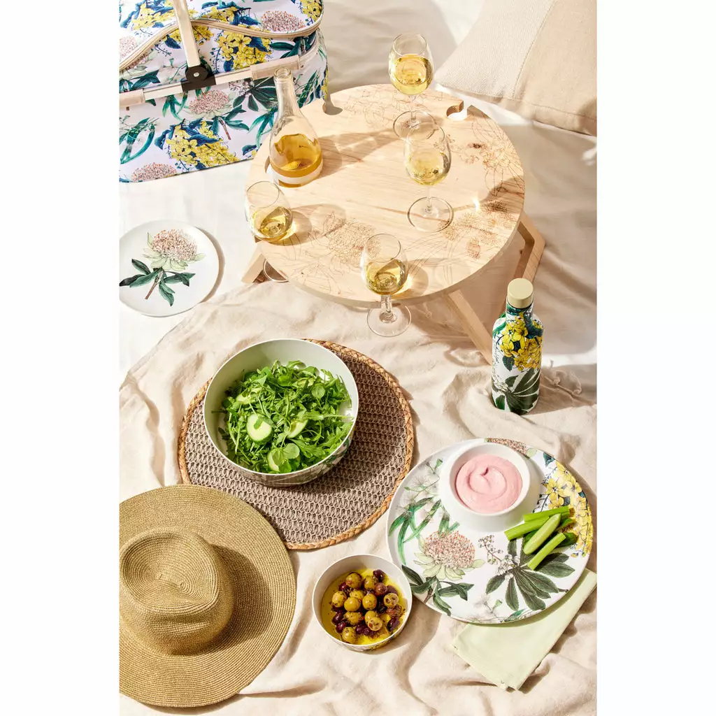 Showcasing a collection of servingware crafted from durable bamboo fibre, the Golden Summer range of bowls, platters and more are versatile for any party or outdoor occasion.