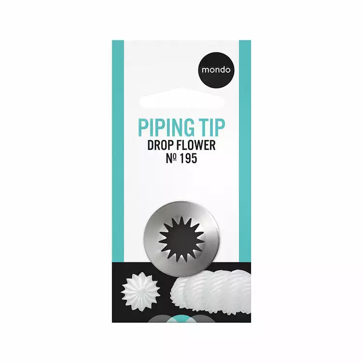 You get the most gorgeous rosettes with the Mondo #195 Large Drop Flower Piping Tip. This tube has a flower or star-shaped opening, offering you all the possibilities for cake decorating! Its stainless steel material ensures it’s going to withstand frequent use and long-term storage.