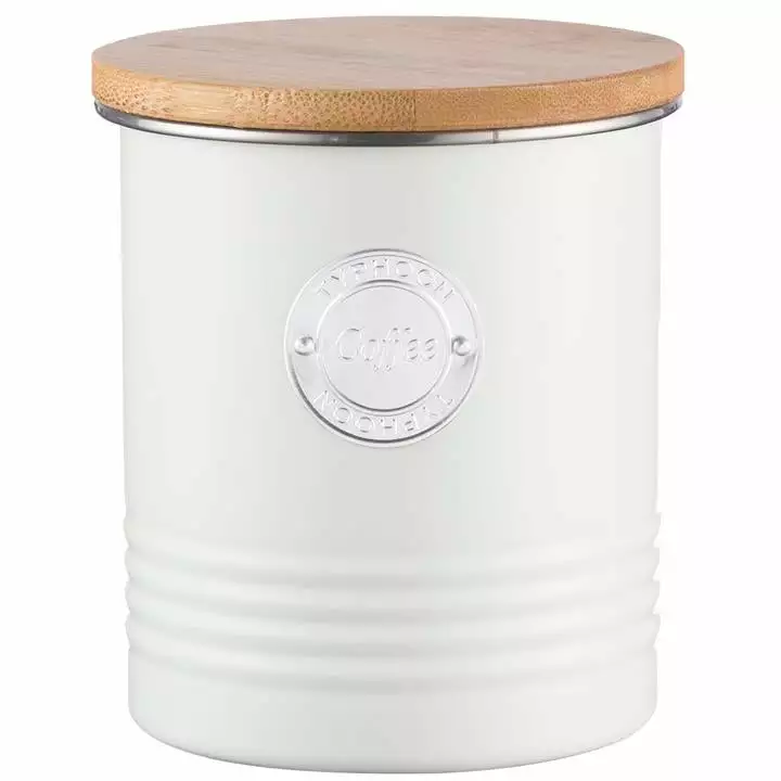 Keep your coffee grinds or beans in a safe place with the Typhoon Living Coffee Canister 1L – Cream. Made out of durable and lightweight tinware, this canister has a ribbed, satin finished exterior and an sustainably sourced, bamboo lid for a natural touch. Featuring a lid that becomes airtight to keep its contents fresher for longer, this canister also features silver detailing to bring both functionality and style to your kitchen.