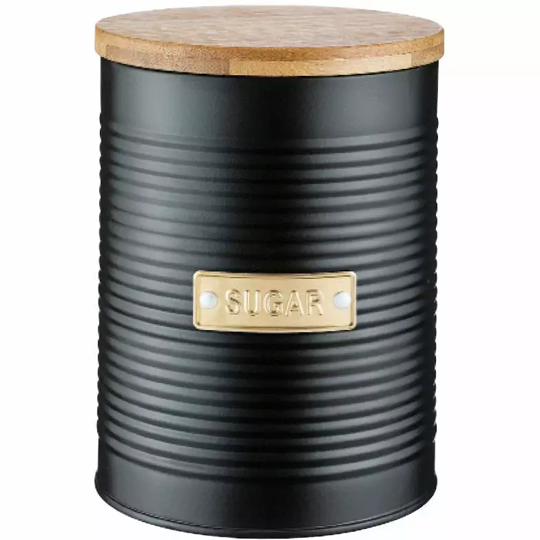 Keep an organised kitchen thanks to the Typhoon Living Sugar Canister 1.4L – Black. Featuring a sustainable and eco-friendly bamboo wooden lid that making it airtight, this canister is both durable and practical. With a generous capacity of 1.4L, you’ll have more than enough room to store your sugar, and with a streamlined and classical design, it’s bound to look right at home in any kitchen. Made out of lightweight tinware, this canister can also stack easily and featuress a ribbed exterior with gold detailing to add a touch of sophisticated to your decor.